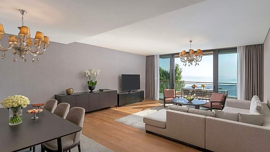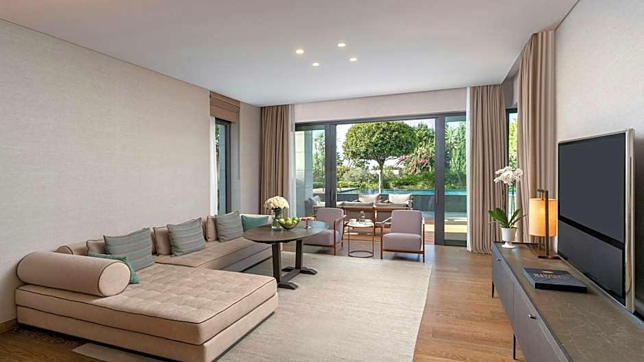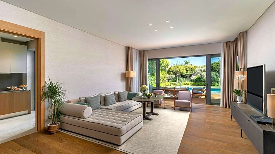 Featuring a private terrace with an outdoor pool, this suite offers views of the sea. Along with a bedroom with a king bed, you will find a living room and a separate guest toilet. The living room is set with a large sofa and a dining table. Private bathroom features a steam shower, an oversize bath and a twin vanity unit.